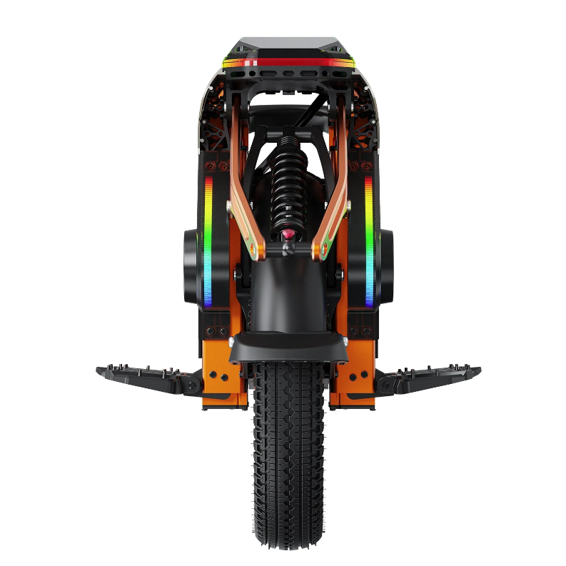 Beim S16 Pro steht Sicherheit an erster Stelle. Das automatisch einstellbare Frontlicht, das hintere Bremslicht und die integrierten Blinker sorgen dafür, dass der Fahrer immer gut sichtbar ist. Die 88 mm Federung absorbiert Stöße, verbessert die Stabilität und erhöht den Komfort auf unebenen Straßen. Die intelligente KingSong-Software reguliert das Drehmoment automatisch, wenn der maximale Steigungswinkel von 48° erreicht wird, um eine Überlastung des Motors zu verhindern. Die KingSong App liefert Echtzeitdaten zu Motortemperatur, Batteriespannung und Systemdiagnose, sodass Sie stets die volle Kontrolle über die Sicherheit und den Zustand Ihres Fahrzeugs haben.