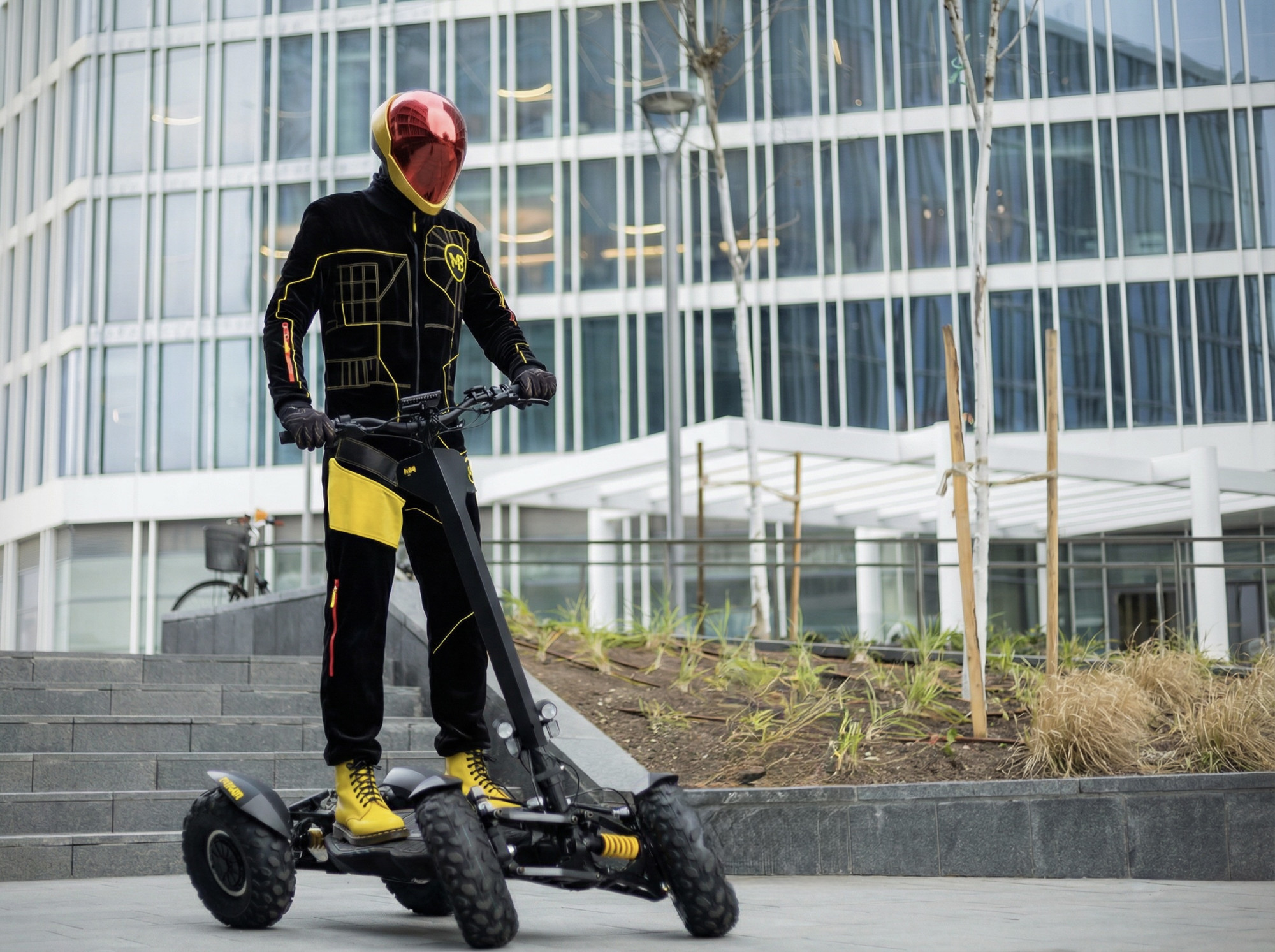 Das neue Modell MIA Four X4 stellt den nächsten Schritt in der Entwicklung der elektrischen Scooter von MIA Dynamics dar. Im Vergleich zur ursprünglichen Version MIA Four 2×2 kommt es mit einer entscheidenden Verbesserung – einem vollwertigen Allradantrieb (4×4), der unvergleichliche Traktion, Stabilität und Leistung auf jedem Terrain bietet. Dank zwei leistungsstarker BLDC-Nabenmotoren mit einer kombinierten Leistung von bis zu 7200 W liefert er sofortige Beschleunigung, die Fähigkeit, Steigungen bis zu 30° zu bewältigen, und eine Dynamik, die in dieser Kategorie kaum zu finden ist. Die neue Generation nutzt außerdem eine Leichtbaukonstruktion mit einem Gesamtgewicht von nur ~57 kg (ohne Batterie) und einer herausnehmbaren Batterie von 10,5 kg, was sie zu einer leistungsstarken, aber dennoch leicht tragbaren und einfach zu verstauenden Maschine macht. Der MIA Four X4 hat kompakte Abmessungen – Länge 1244 mm, Breite 689 mm und Höhe 1190 mm, wobei er im zusammengeklappten Zustand nur 450 mm hoch ist. Das ermöglicht eine einfache Aufbewahrung selbst in kleinen Wohnungen oder im Kofferraum eines Autos. Im Vergleich zur Vorgängergeneration bietet er nicht nur mehr Leistung, sondern auch eine verbesserte Federung, neue hydraulische Bremsen, größere 14,5-Zoll-Räder und ein überarbeitetes elektronisches Steuerungssystem, das ein sanftes Umschalten zwischen den Modi 2×2 und 4×4 ermöglicht. So kann der Fahrer maximale Leistung dort einsetzen, wo sie gebraucht wird – und Energie sparen, wenn er auf ebenem Terrain fährt.