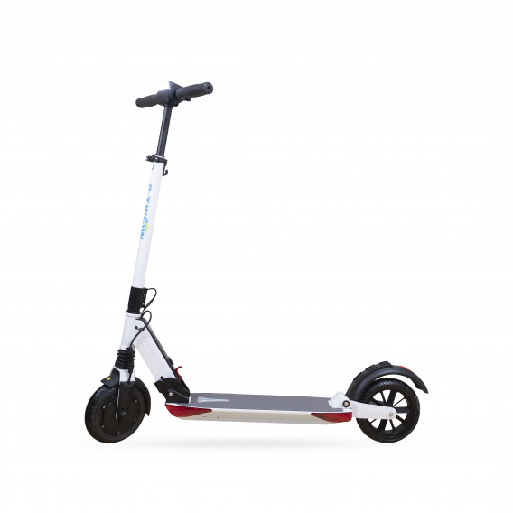 Viele Kunden haben Sorgen bei Scootern mit Vollreifen – wegen der weniger komfortablen Fahrt. Die ganze Reihe Booster von E-Twow nutzt jedoch Vollreifen aus patentiertem Material, das zwar nie so dämpfend wird wie ein Luftreifen, aber doch ein bisschen federt und insbesondere eine gute Haftung hat. Gerade diese Räder tragen überraschend zum Gesamtkomfort bei, weil sie nicht durchstochen werden können und Sie somit keinen Platten bekommen können. Als Fahrer erhalten Sie somit eine viel größere Sicherheit und Freude an der Nutzung, weil Sie wissen, dass Sie stets rechtzeitig ans Ziel kommen und an den Luftdruck in den Reifen nicht denken und auch keinen Platten fürchten müssen. Dies alleine an sich hat einen riesigen Wert, weil bei den Maßen der Räder von 8 Zoll die Platten bei Modellen mit den Luftreifen sehr oft vorkommen. Wenn Sie täglich fahren werden, sparen Ihnen diese Räder vielleicht auch einen Platten im Monat. Die Reihe Booster hat dazu noch gefedertes Vorder- und auch Hinterrad, was nicht nur den Komfort, sondern auch die Sicherheit steigert. Dank der Federung stürzen Sie vom Scooter nicht, wenn Sie zufällig ein Schlagloch oder eine andere Unebenheit treffen. Die vordere und auch die hintere Feder kann leicht ausgetauscht werden und wir halten sie auf Lager; ihren Austausch empfehlen wir nach ca. 3.000 km. Die hintere Feder hat verstellbare Vorspannung, sodass Sie diese an das Fahrergewicht anpassen und dadurch auch die Bodenfreiheit des Scooters ändern können. Zum Komfort tragen auch die automatische vordere Beleuchtung mit Sensor, übersichtliches Display, Tempomat, das extrem niedrige Gewicht und insbesondere die volle Wartungsfreiheit bei. Sie brauchen sich um nichts Sorgen zu machen, nur den Scooter aufzuladen und zu fahren. Sogar auch die Bremse ist elektromagnetisch, sodass Sie diese nicht nur nicht pflegen, einstellen oder die Bremsbeläge tauschen müssen, sondern wird sie Ihnen beim Bremsen auch noch die Batterie aufladen. Der Komfort der Fahrt selbst ist in dieser Gewichtskategorie überdurchschnittlich, auch wenn er natürlich mit den Modellen mit Luft- oder Öldämpfern nicht mithalten kann. Solche Modelle gibt es jedoch in dieser Gewichtskategorie nicht. Die absolute Spitze ist der Komfort des Besitzes bei diesem Scooter. Mit Ausnahme der Aufladung und eines gelegentlichen Kontrollservices braucht man nichts mehr. Zum Komfort trägt auch die höhenverstellbare Lenkstange bei, sodass der Scooter an Fahrer mit unterschiedlicher Größe angepasst werden kann und die gesamte Familie den Fahrspaß miterleben darf. Im Rahmen des Facelifts bekam dieser Scooter neues Material der Trittfläche, die aus Silikon besteht. Ihre Reinigung ist viel besser als bei ihren Vorgängern, insbesondere jedoch das völlig neue Klappmechanismus, das endlich auch mit der Hand ganz einfach zusammengelegt werden kann und der Klapphebel ist mit einem Magnet gesichert. Dank dieser Änderung beseitigte der Hersteller den früher etwas schwierigeren Prozess des Zusammenlegens und brachte den Scooter wieder ein Stück näher an die Vollkommenheit.