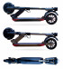 Die Reihe Booster gehört zweifellos zu den praktischsten Scootern in der Welt. Seine einzige Mission ist das beste Modell für die städtische Umgebung zu sein und es gelingt ihm dieses Ziel zu hundert Prozent zu erfüllen. Sie können von ihm keine komfortable Fahrt auf lange Strecken außerhalb der Stadt erwarten und seine Offroad- Fähigkeiten sind minimal. Dies opfern Sie jedoch gerne, da Sie in der Stadt einfach nichts davon brauchen. In der Stadt zählt das niedrige Gewicht, die Wendigkeit, Handlichkeit, Beständigkeit gegen schlechtere Straßen und Fußwege. Wenn Sie die ausreichende Leistung, Laufleistung und völlige Wartungsfreiheit dazu geben, bekommen Sie gerade die Reihe Booster, die in dieser Gewichtskategorie praktisch keine Konkurrenz hat. Dank den vollen Rädern aus patentiertem Material können Sie keinen Platten bekommen; sie sind jedoch ausreichend adhäsiv und sind insbesondere sowohl an der Vorder-, als auch an der Hinterachse gefedert und die Fahrt auf ihnen ist demnach immer noch ausreichend bequem für die städtischen Strecken. Bei der ganzen Reihe ist insbesondere ihre Handlichkeit genial. Der Scooter kann in weniger als zehn Sekunden zu minimalistischen Maßen zusammengelegt (später auseinandergelegt) werden, dank denen er kleiner als ein kleiner Koffer ist. Sie können ich zum Beispiel unter den Stuhl im Cafe, unter den Sitz im Bus oder im Zug verstauen und in den Kofferraum eines gewöhnlichen Autos passen gleich einige auf einmal. Zusammengelegt hat er nämlich eine Breite von weniger als 15 cm, Höhe 33 cm und Länge einen Meter, sodass er wirklich überall hineinpasst. Das kann man von keinem anderen E-Scooter mit Federung und ähnlichen Parametern sagen. Sehr praktisch ist auch die Lenkstange, die über eine leicht verstellbare Höhe verfügt und somit sowohl an niedrige, aber auch an hohe Fahrer dank dem Schnellspanner im Laufe weniger Sekunden angepasst werden kann. Dem Praktischen half sehr auch der neueste Facelift, der den Klappmechanismus bedeutend verbesserte und der nun auch mit der Hand bedient werden kann, eine neue, abwaschbare Silikonoberfläche der Trittfläche ergänzte und die klappbaren Griffe vervollkommnete und verstärkte.