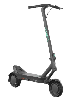 Der Egret Ey! 1 überzeugt mit seinem klaren, modernen und zugleich robusten Design, das Funktionalität und Ästhetik verbindet. Zusammengeklappt hat der Roller die Maße 1220 × 638 mm, wodurch er sich leicht transportieren und verstauen lässt. Dank des ausgefeilten Klappmechanismus kann er schnell und sicher zusammengeklappt werden – ein großer Vorteil bei der Nutzung von öffentlichen Verkehrsmitteln oder beim Transport im Auto. Für hohen Fahrkomfort sorgt die Vollfederung mit einseitigen Schwingen und einer hochwertigen Polymer-Dämpfung mit 61 mm Federweg, die zu den besten ihrer Klasse gehört. Zur Fahrstabilität tragen auch die 10″ Tubeless-Reifen mit Self-Sealing-Schicht bei, die das Pannenrisiko minimiert. Die Beleuchtung besteht aus einem Front-LED-Licht mit 425 lm, das für hervorragende Sicht bei Nacht sorgt, sowie einem Rücklicht mit Bremsfunktion für zusätzliche Sicherheit. Hinzu kommen integrierte Blinker an den Lenkerenden, eine Lösung, die normalerweise nur bei teureren Modellen verfügbar ist. Das moderne LED-Display bietet einen Überblick über Geschwindigkeit, Akkustand und Fahrmodus. Ebenfalls vorhanden sind 3 Fahrmodi – Drive, Sport und Extreme – sowie ein zusätzlicher Gehmodus mit 6 km/h, der das Handling außerhalb der Fahrt erleichtert.