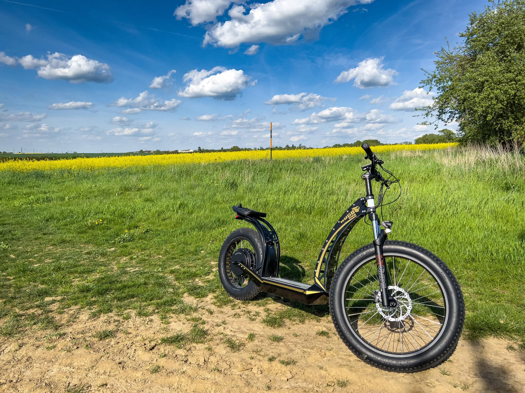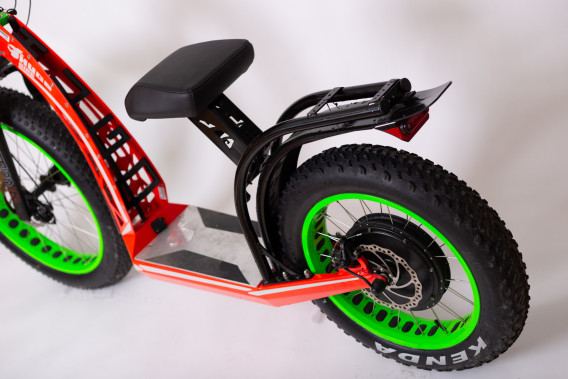 This scooter is simply extreme! If you love extremes then it is meant for you. It is obvious that custom handmade production and high product quality have not died out yet in the Czech Republic. HUGO Bike produces a scooter model that is unrivalled on the market. The Big One X is a completely unique scooter for lovers of enormous power and adrenaline. The proven frame design is exceptional by its ability to pass through terrain like no other. Add to it precise workmanship and high quality of the materials used and we get a machine of high utility value. The scooter meets the paper specs declared by the manufacturer, having a functional design and being very safe to ride. Believe us – riding this scooter will give you a true experience you will never forget.