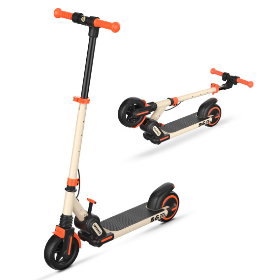 Der E-Scooter Isinwheel S6 ist bestimmt für kleinere und jüngere Anhänger der persönlichen E-Mobilität. Die Lenker können in der Höhe in einem Bereich von 75 cm bis zu 100 cm eingestellt werden, was Kindern im Alter von ungefähr 6 bis 14 Jahren, bzw. bis zu einem Gewicht von 60 kg entspricht. Er hat ein attraktives Designe in zwei Farbvarianten – beige-orange und beige-blau, damit sowohl die Mädchen als auch die Jungs gleichermaßen auf ihre Kosten kommen. Der Scooter ist klappbar und mit dem Gewicht von nicht mal 7 kg ist er somit sehr praktisch für Tragen und Lagerung. Er verfügt über einen 150 W Motor im hinteren Rad und zwei Bremsen – vordere elektrische und hintere Fußbremse. Ihr Kind wird von zwei 6,5-Zoll Vollreifen getragen und beim Komfort bei der Fahrt hilft die vordere Federung.