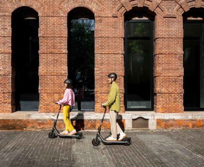 Der Ninebot KickScooter E2 Plus E II ist so konzipiert, dass er optimal in den urbanen Alltag passt. Dank seines geringen Gewichts von nur 16 kg ist die Handhabung auch für weniger kräftige Nutzer einfach, und der Klappmechanismus ermöglicht problemloses Tragen in öffentlichen Verkehrsmitteln, im Aufzug oder ins Büro. Der Scooter bleibt auch bei maximaler Belastung von 90 kg stabil, sodass ihn Erwachsene unterschiedlicher Statur problemlos nutzen können. Durch die wartungsfreien 8,1"-Reifen entfallen Sorgen um Luftdruck oder Reifenpannen, was Zeit und Wartungskosten spart. Die Federung mit einem Hub von 27 mm erhöht den Fahrkomfort im Stadtverkehr, wo Bordsteine, Pflaster oder kleinere Unebenheiten üblich sind. Die IPX4-Zertifizierung erlaubt die Nutzung bei leichtem Regen, während die Elektronik zuverlässig vor Spritzwasser geschützt ist. Die Verbindung zur mobilen App über Bluetooth ermöglicht die Überwachung des Batteriestands, der gefahrenen Kilometer, von Servicehinweisen sowie die Aktivierung von Sicherheitsfunktionen wie der elektronischen Sperre. Drei Fahrmodi erhöhen die Alltagstauglichkeit: Eco für energiesparendes Fahren mit bis zu 25 km Reichweite, Standard für ausgewogene Leistung und Sport mit einer Höchstgeschwindigkeit von 25 km/h und der maximalen Motorleistung von 500 W. Mit einer Ladezeit von rund 7,5 Stunden lässt sich der Scooter bequem über Nacht aufladen und ist morgens einsatzbereit.